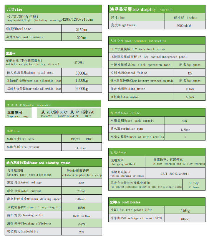 JC-DEV8240 多媒體掃路機配置有全景玻璃結構的駕駛室,舒適冷暖空調、安全警示工作燈、10.2寸超大觸摸屏、 一鍵操作按鈕、行車 和倒車雙錄高清行車儀 。70kwh 的超大容量電池組65寸大液晶顯示屏 ;掃刷轉速采用手柄式速度調節(jié)閥控制,可以根據(jù)道路實際路況控制無級調速 ;清掃掃刷位置和吸風口位置采用水霧噴淋裝置,確保在清潔過程中不會產(chǎn)生揚塵造成二次污染 ;該機掃刷寬度有調節(jié)功能,可由1.6米調節(jié)至2.4米,廣泛適用于城市非機動車道、城市廣場、公園、體育場館、會展中心等場所的清掃作業(yè)。